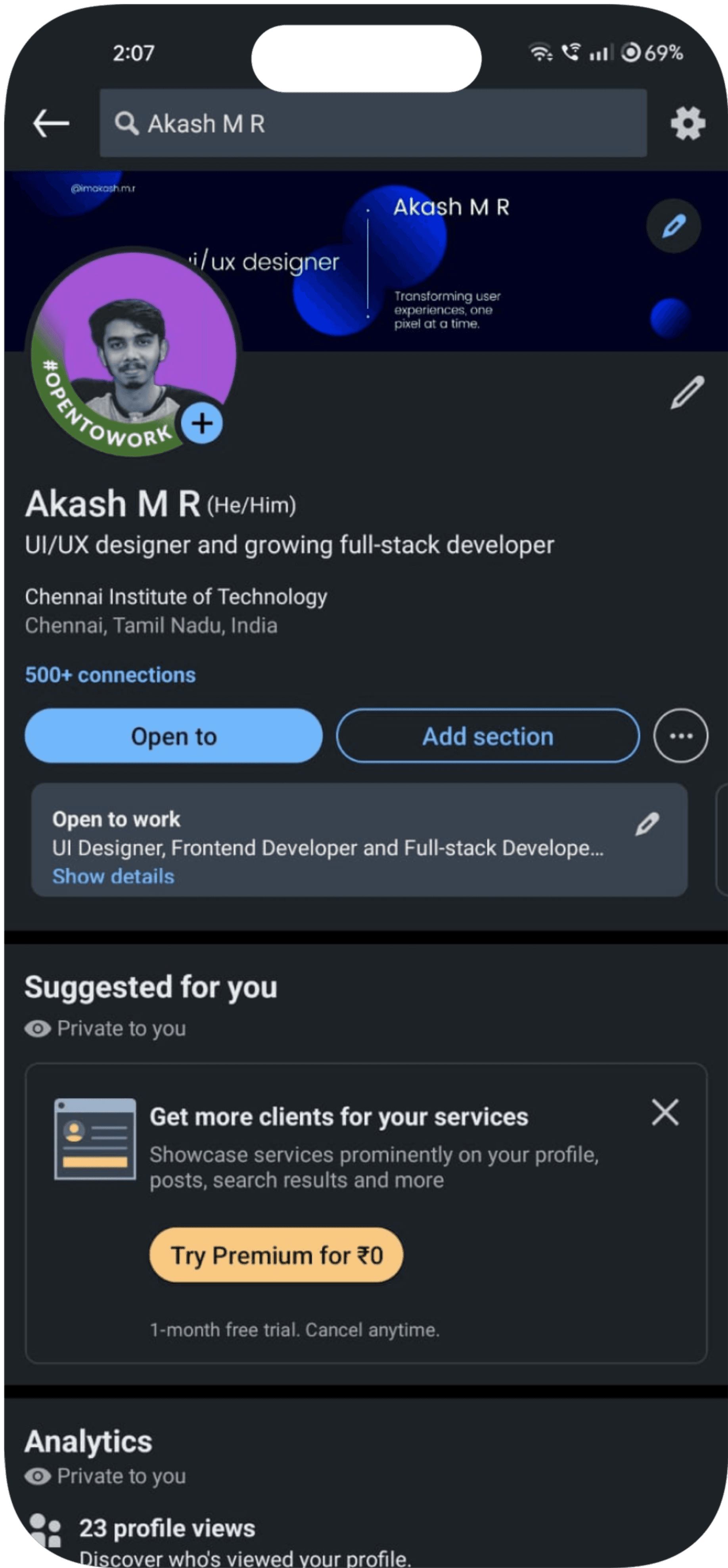 I had the pleasure of collaborating with Akash on a recent project, and I couldn't be more impressed with his expertise and creativity. From concept to the final design,he ensured that every decision made was user-centric. His attention to detail and ability to grasp and translate our vision, and consistent communication throughout the process was outstanding. Highly recommend!